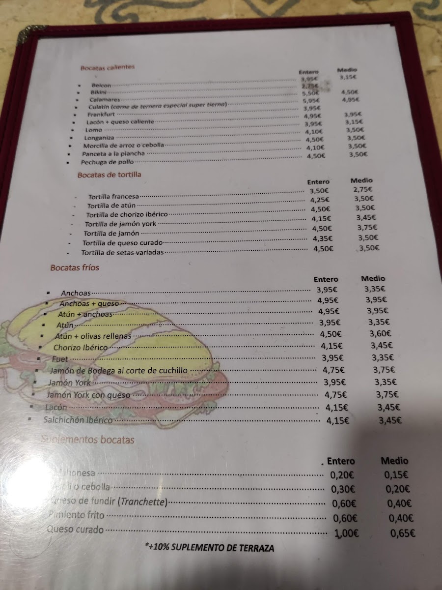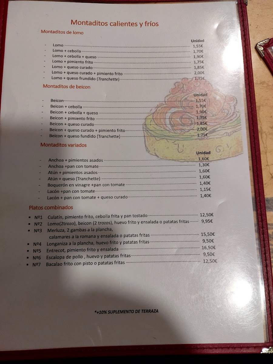 Visitors typically use the menu for casual dining occasions such as coffee breaks, light meals, or social gatherings where sharing various small dishes is common. The menu does not include set menus but allows customization through individual tapas and combined plates.